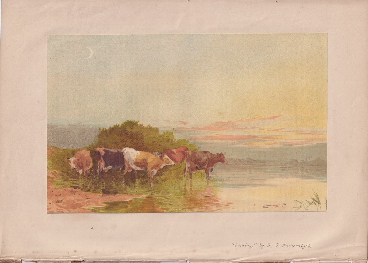 Antique Print, Evening, by Wainewright, 1868, 28.7 x 20.4 cm.