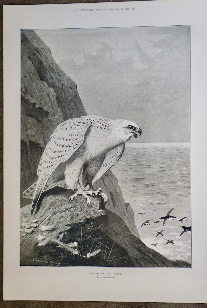 Antique Print, Falcon on the watch, 1897, 39.5 x 27.8 cm.