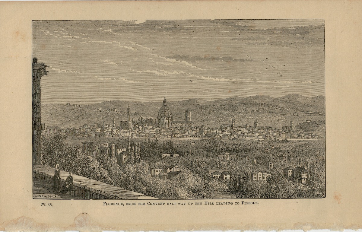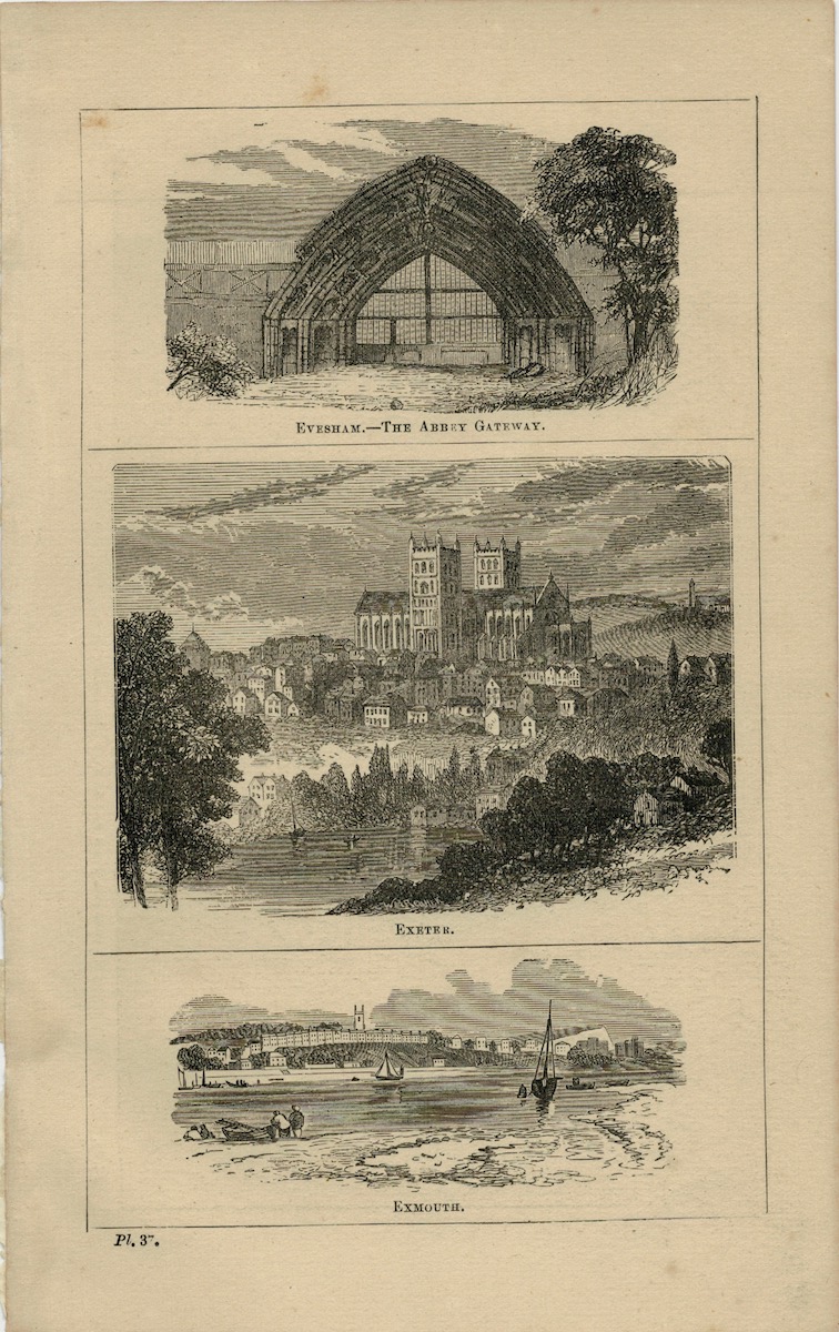 Antique Print, Florence, Evesham, Exmouth, Exeter, 1870, credit Antiche Curiosità©