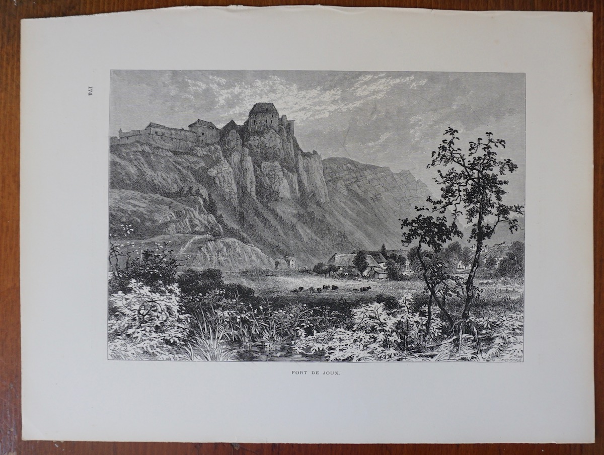Antique Print, Fort de Joux, 1870, 32 x 24 cm.