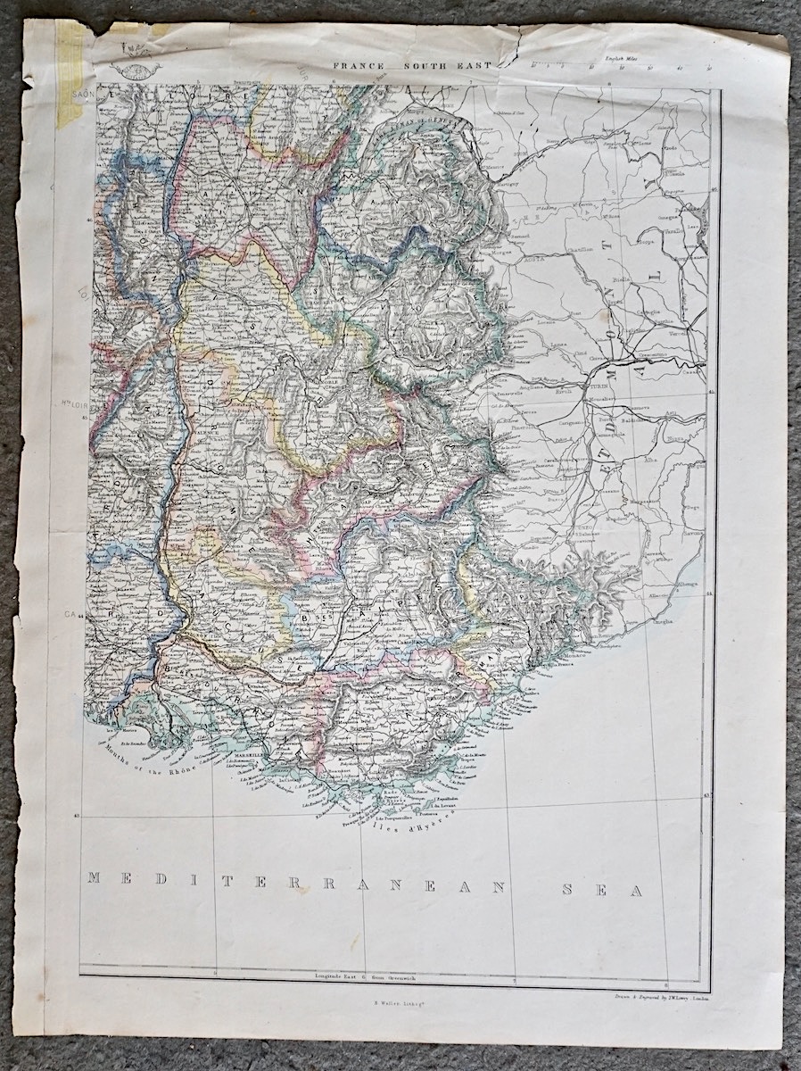 Antique Print, France, South East, 1859, 48 x 36 cm.