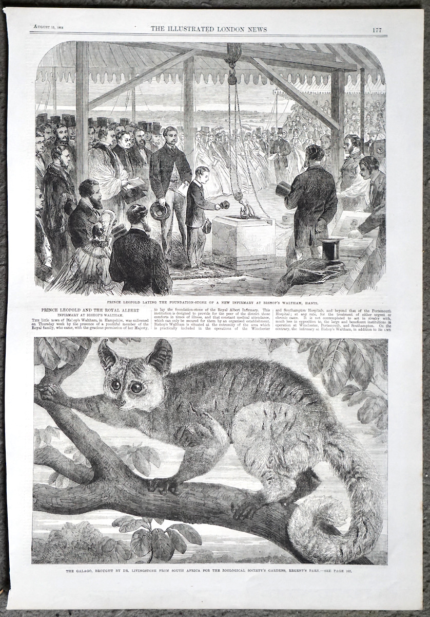 Antique Print, Galago; Prince Leopold, 1864, 40 x28 cm.
