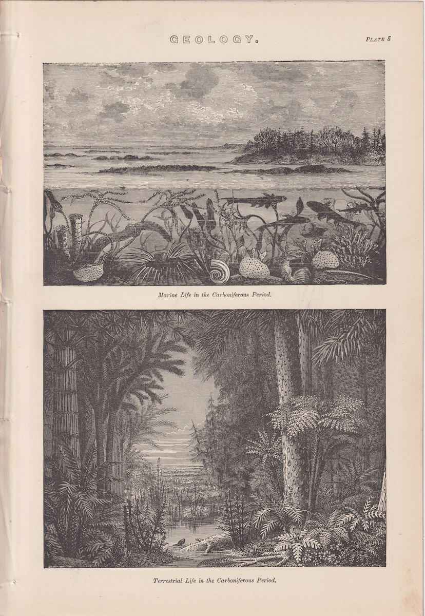 Antique Print, Geology, Carboniferous Period, 1890, credit Antiche Curiosità©