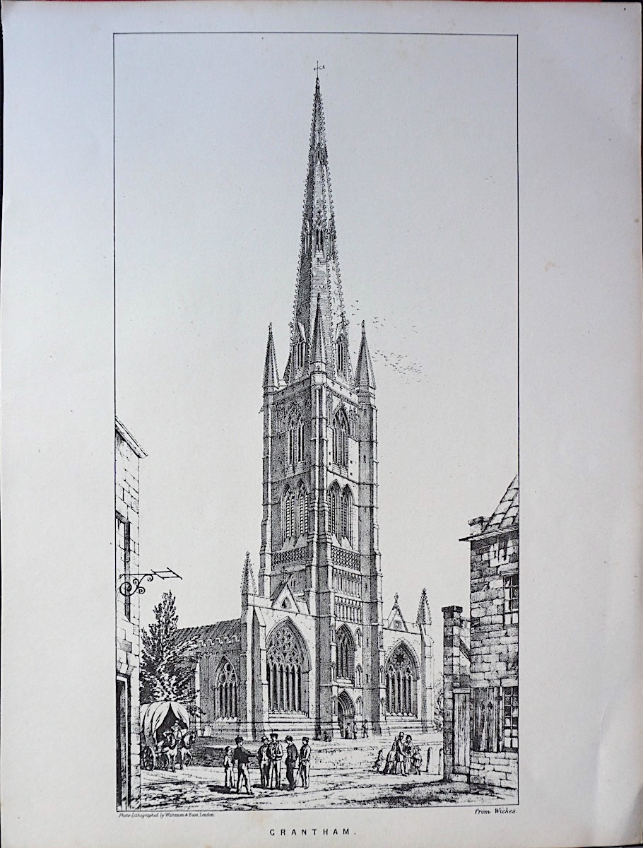 Antique Print, Grantham, 1870, 31 x 23,6 cm.