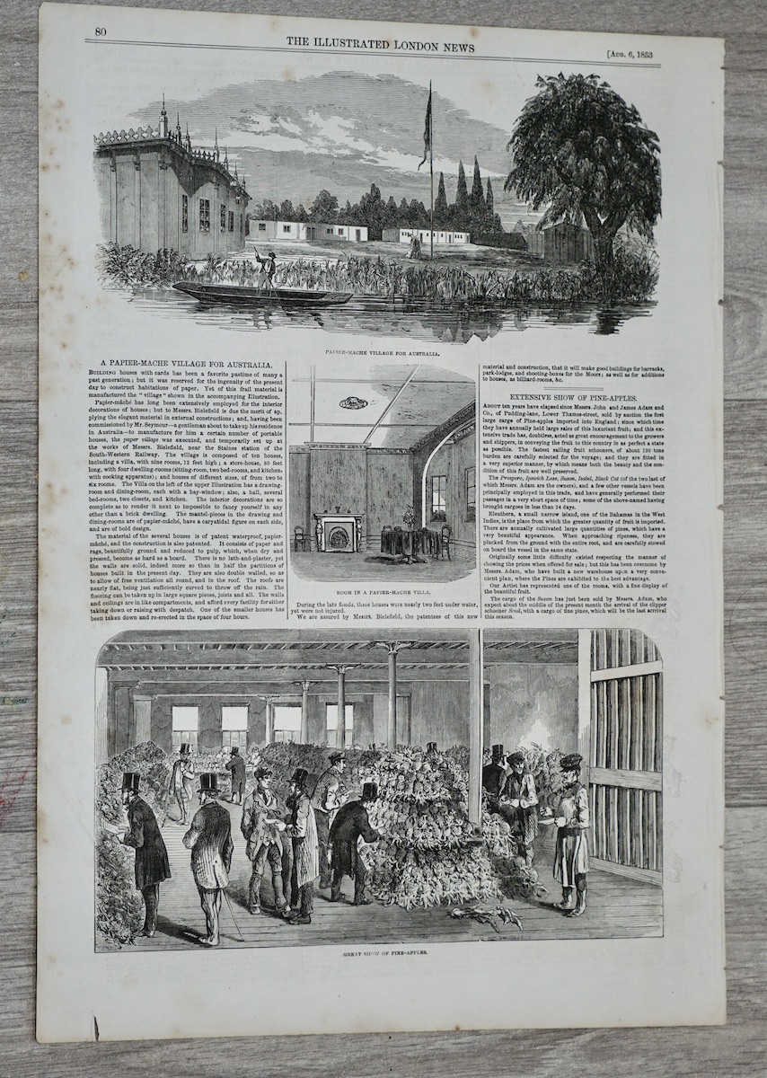 Antique Print, Great Show of Pineapples, 1853, 40.4 x 28.4 cm.