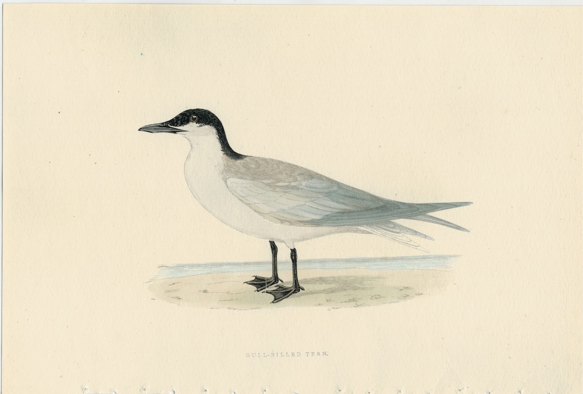 Antique Print, Gull-Billed Tern, 1850, credit Antiche Curiosità©