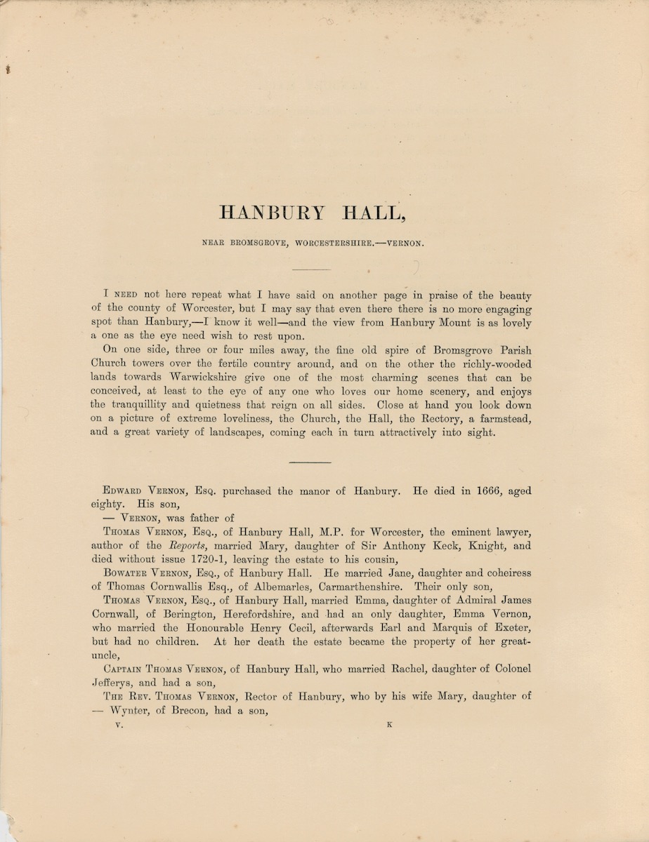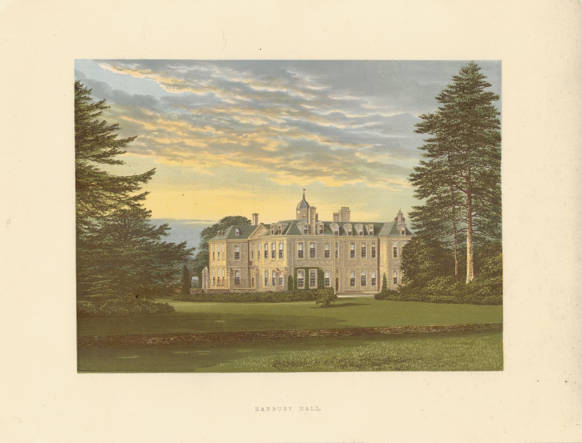 Antique Print, Hanbury Hall, 1893, credit Antiche Curiosità©