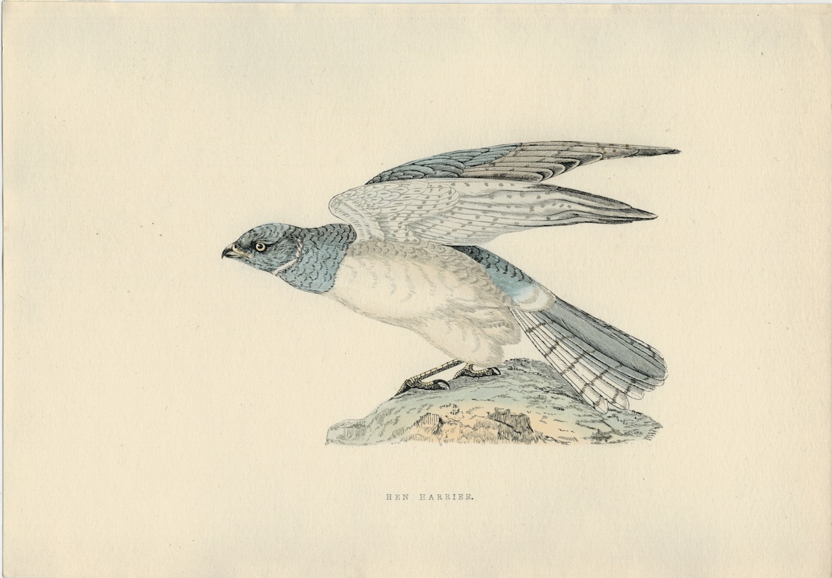 Antique Print, Hen Harrier, 1850, credit Antiche Curiosità©