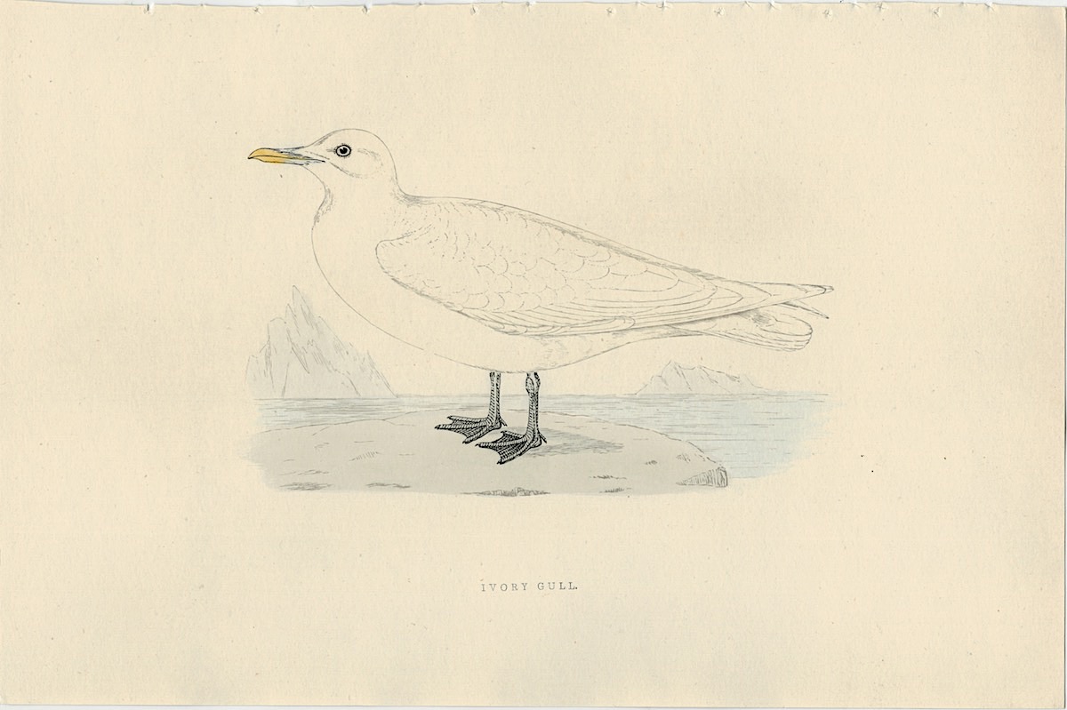 Antique Print, Ivory Gull, 1830, credit Antiche Curiosità©
