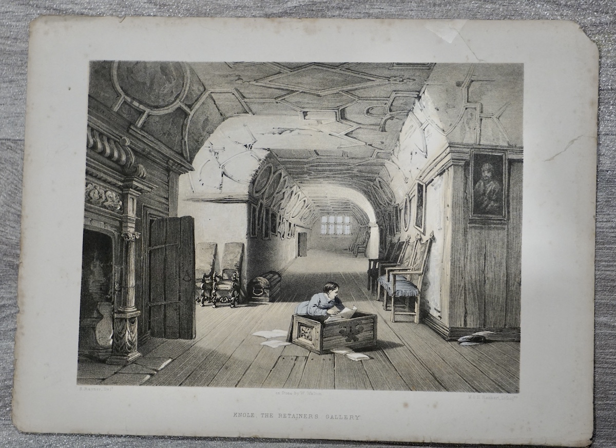 Antique Print, Knole, The Retainers Gallery, 1850 ca., credit Antiche Curiosità©