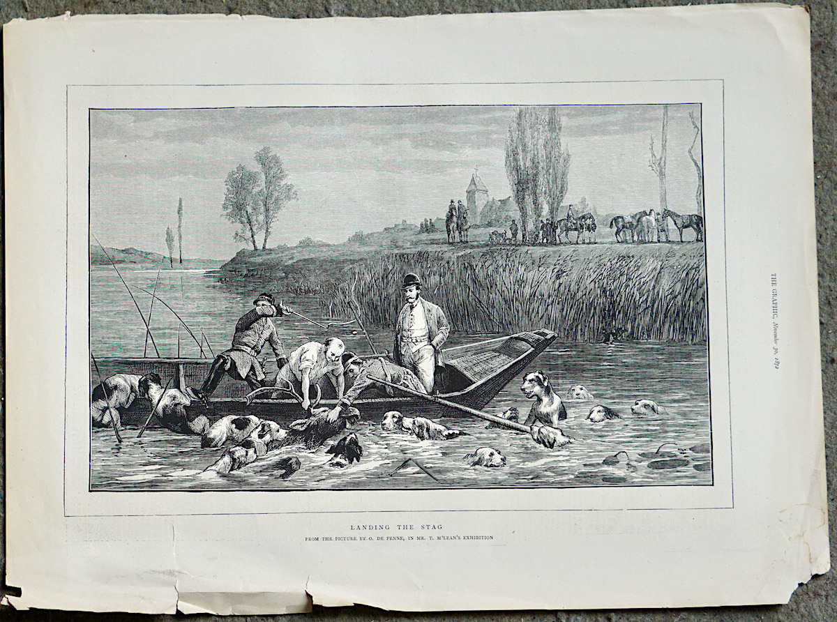 Antique Print, Landing the Stag, 1872, 39.5 x 29.5 cm.