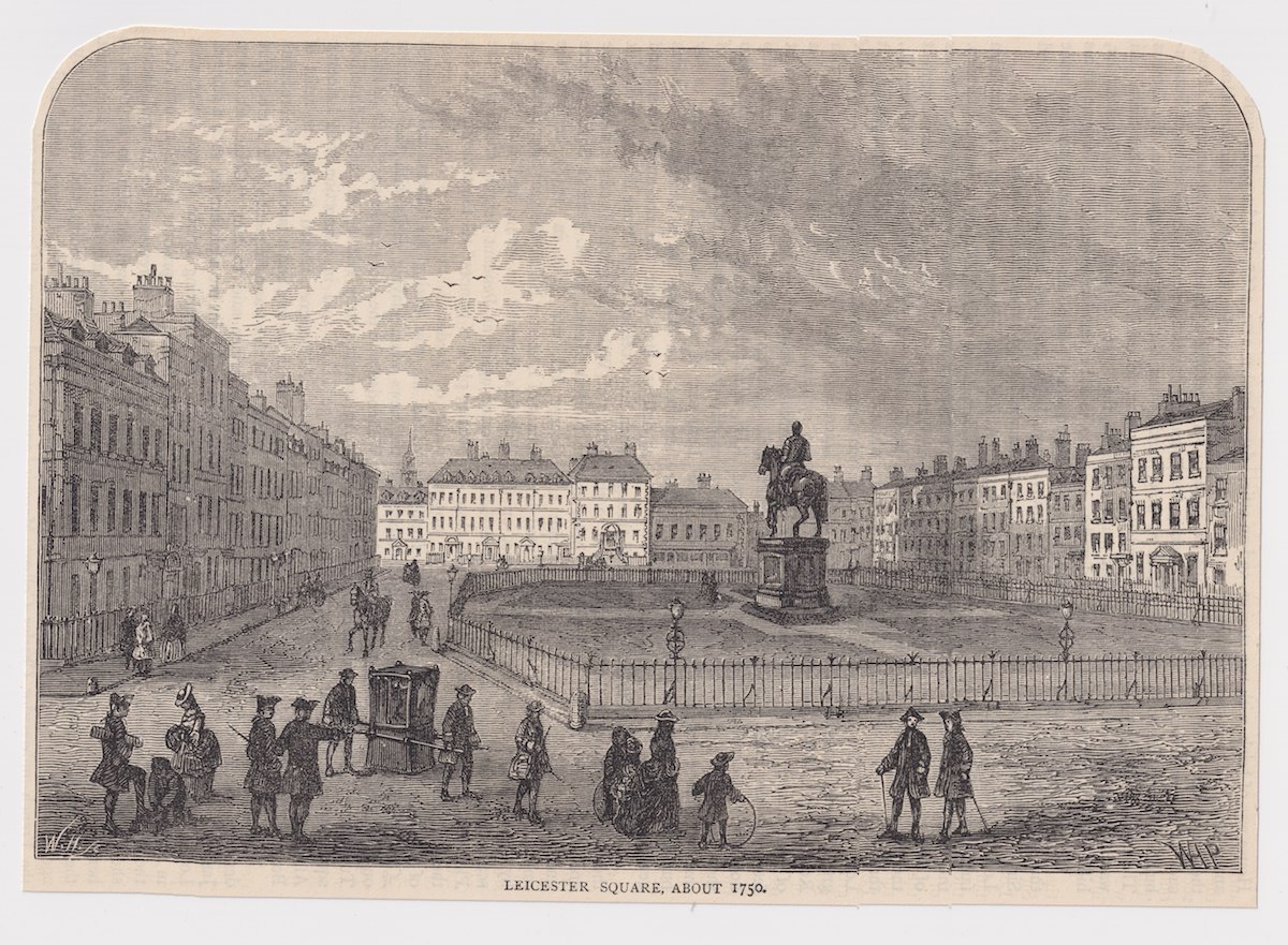 Antique Print, Leicester Square, 1880, credit Antiche Curiosità©