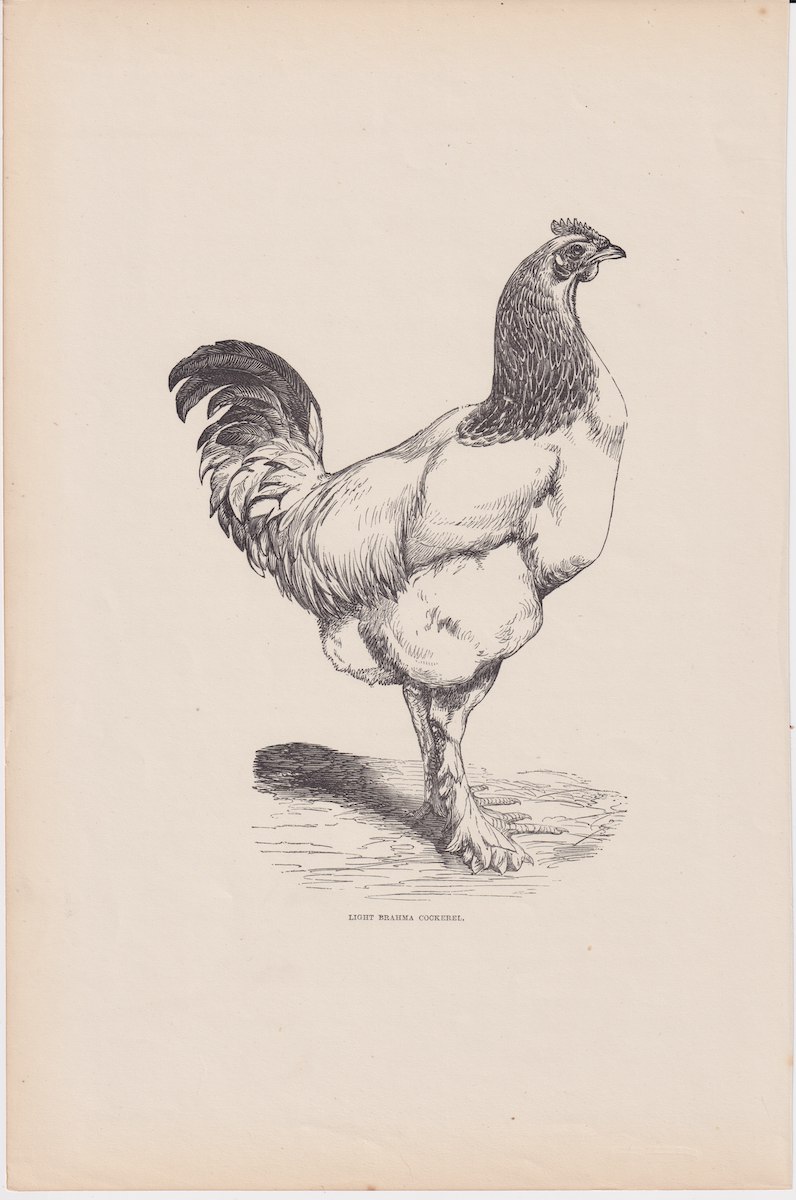Antique Print, Light Brahma Cockerel, 1880, credit Antiche Curiosità©