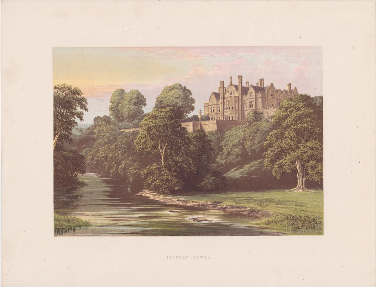 Antique print, Lilburn Tower, 1885, credit Antiche Curiosità©