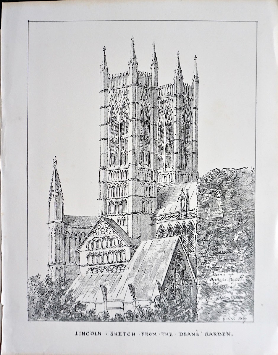 Antique Print, Lincoln, Sketch from the Dean's Garden, 1873