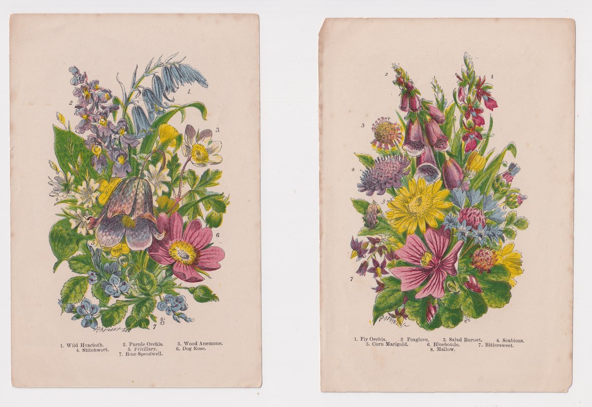 Antique Print, Lot of 2 botanic print, 1870, credit Antiche Curiosità©