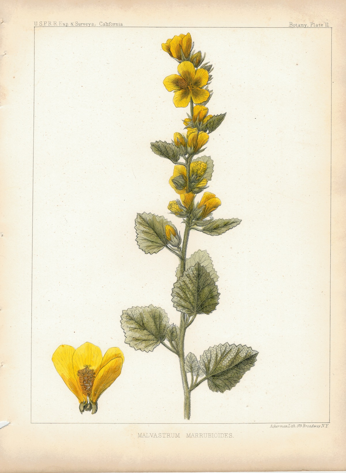 Antique Print, Malvastrum Marrubioides, 1860 ca., credit Antiche Curiosità©
