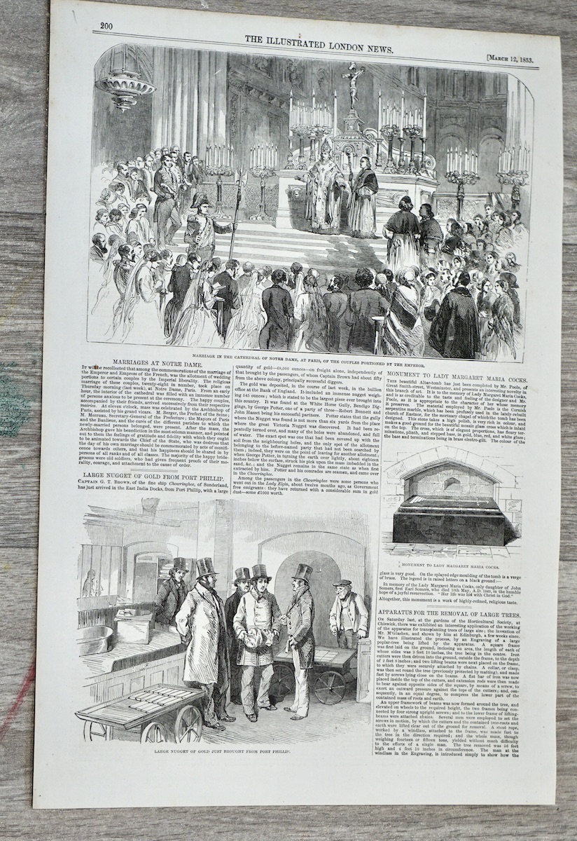 Antique Print, Marriage at Notre Dame, 1853, 27.6 x 40.5 cm.