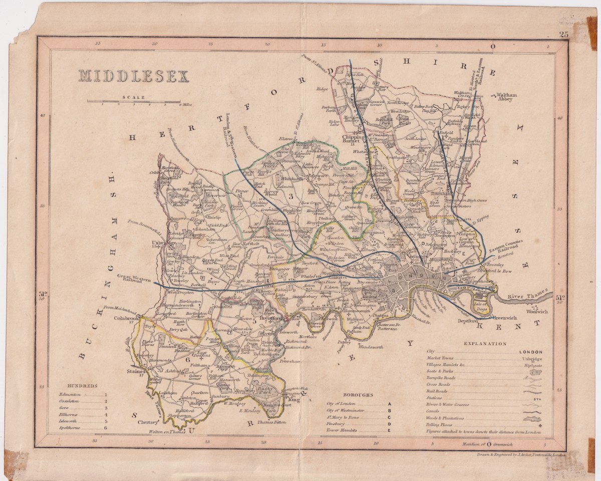 Antique Print, Middlesex, 1860 ca.