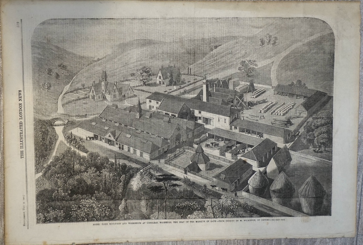 Antique Print, Model farm, 1859, credit Antiche Curiosità©