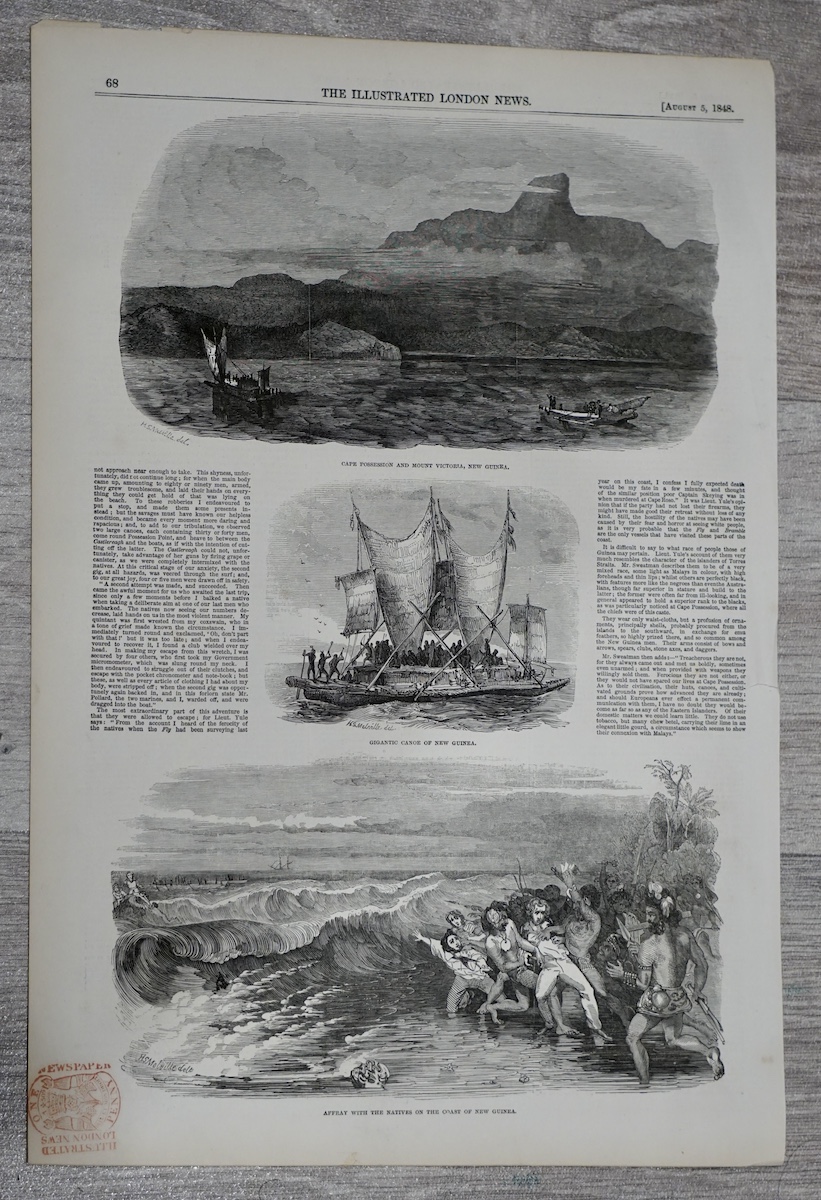 Antique Print, New Guinea, 1848, 27 x 40 cm.