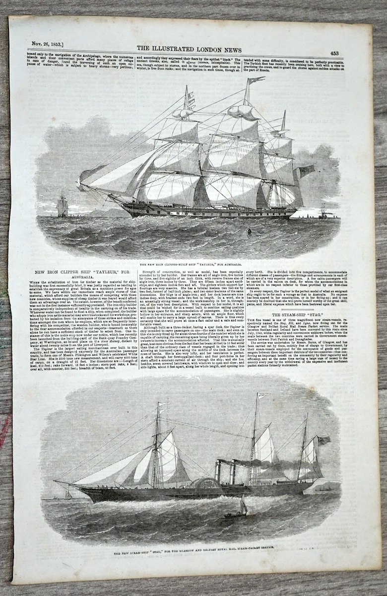 Antique Print, New Iron Clipper, 1853, 27.8 x 41 cm.