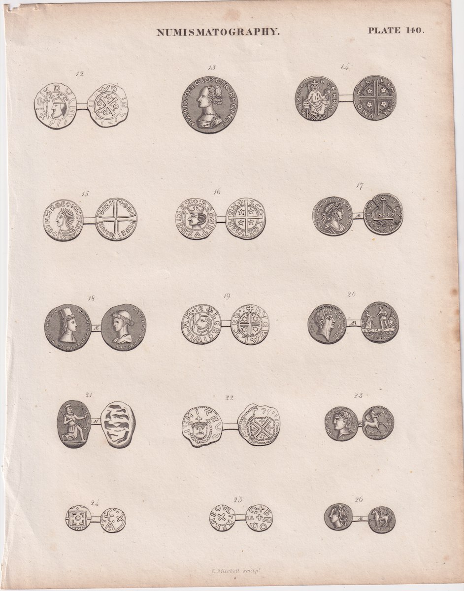 Antique Print, Numismatography, 1830, 20.9 x 26.5 cm.