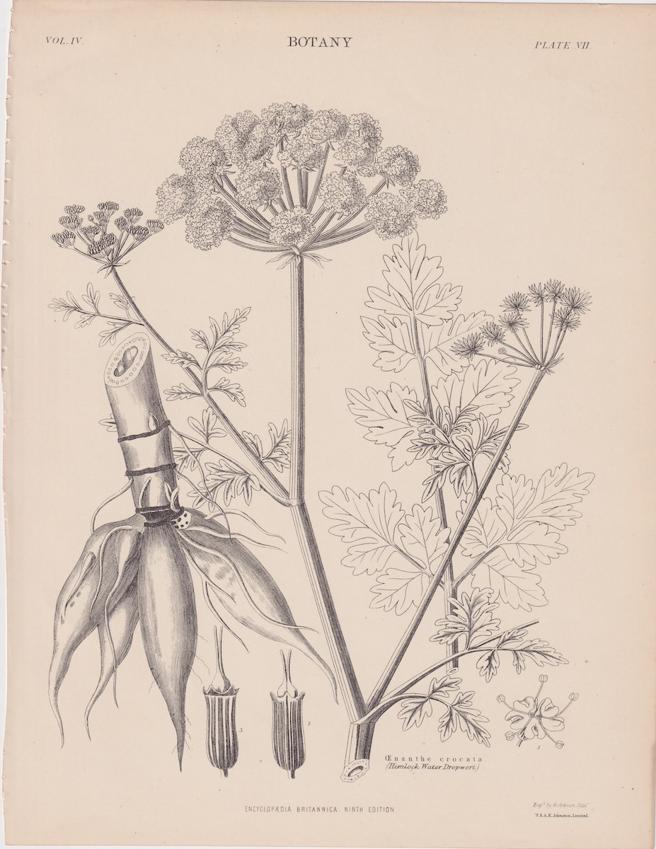 Antique Print, Oenanthe crocata, 1889