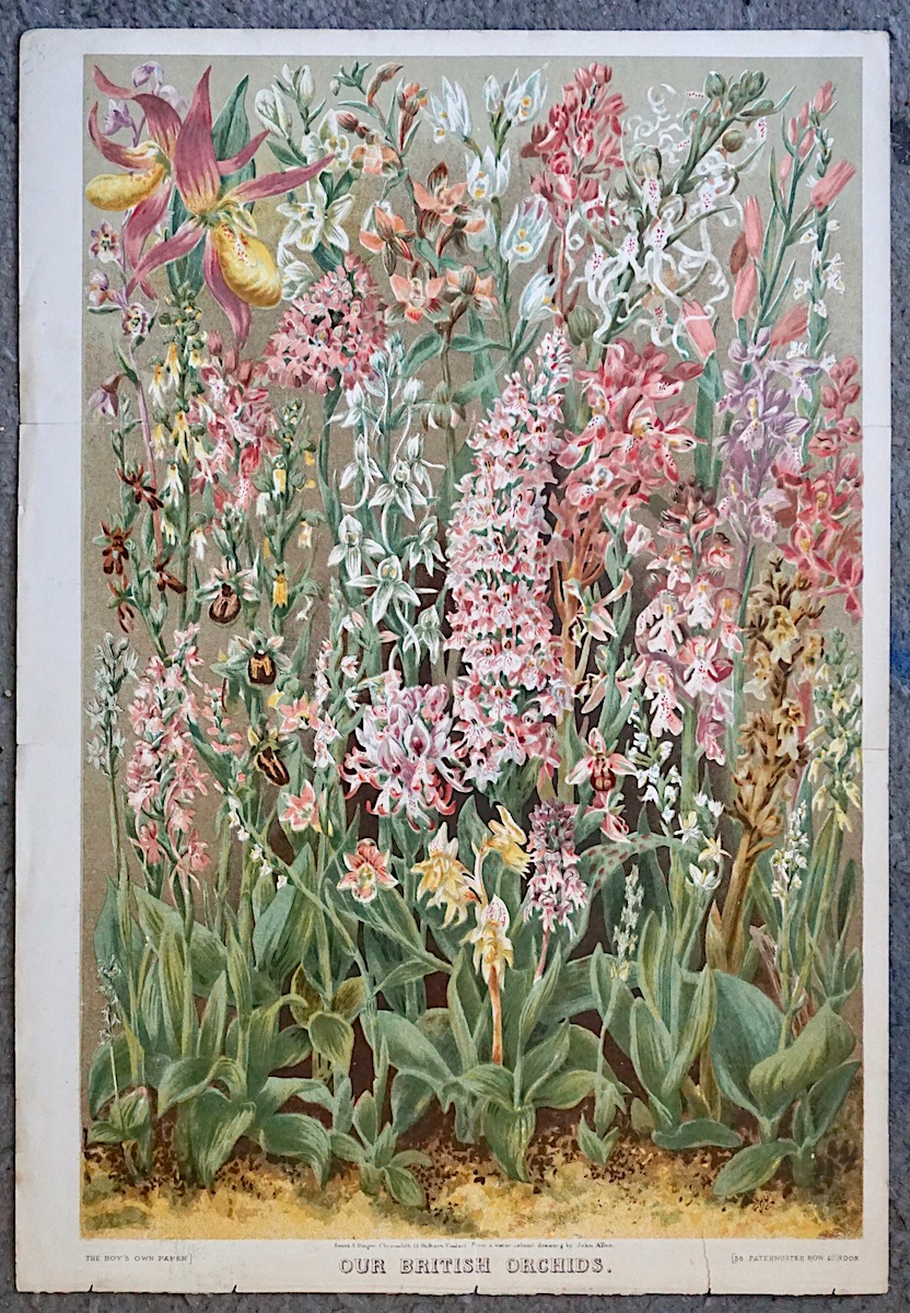 Antique Print, Our British Orchids, by John Allen, 1892, 41,5 x 28,7 cm.