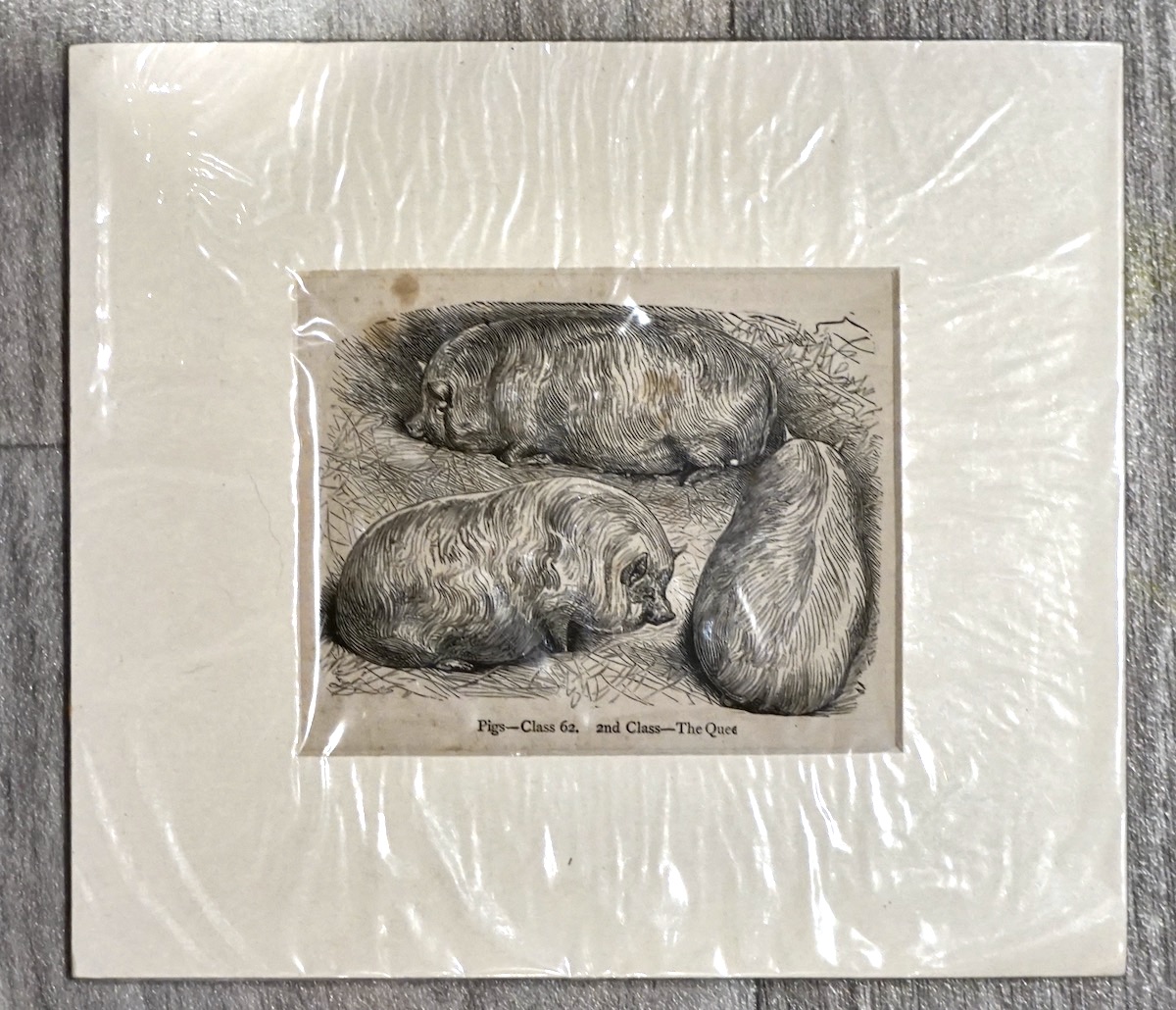 Antique Print, Pigs, 1870 ca. 18.7 x 16.5 cm.