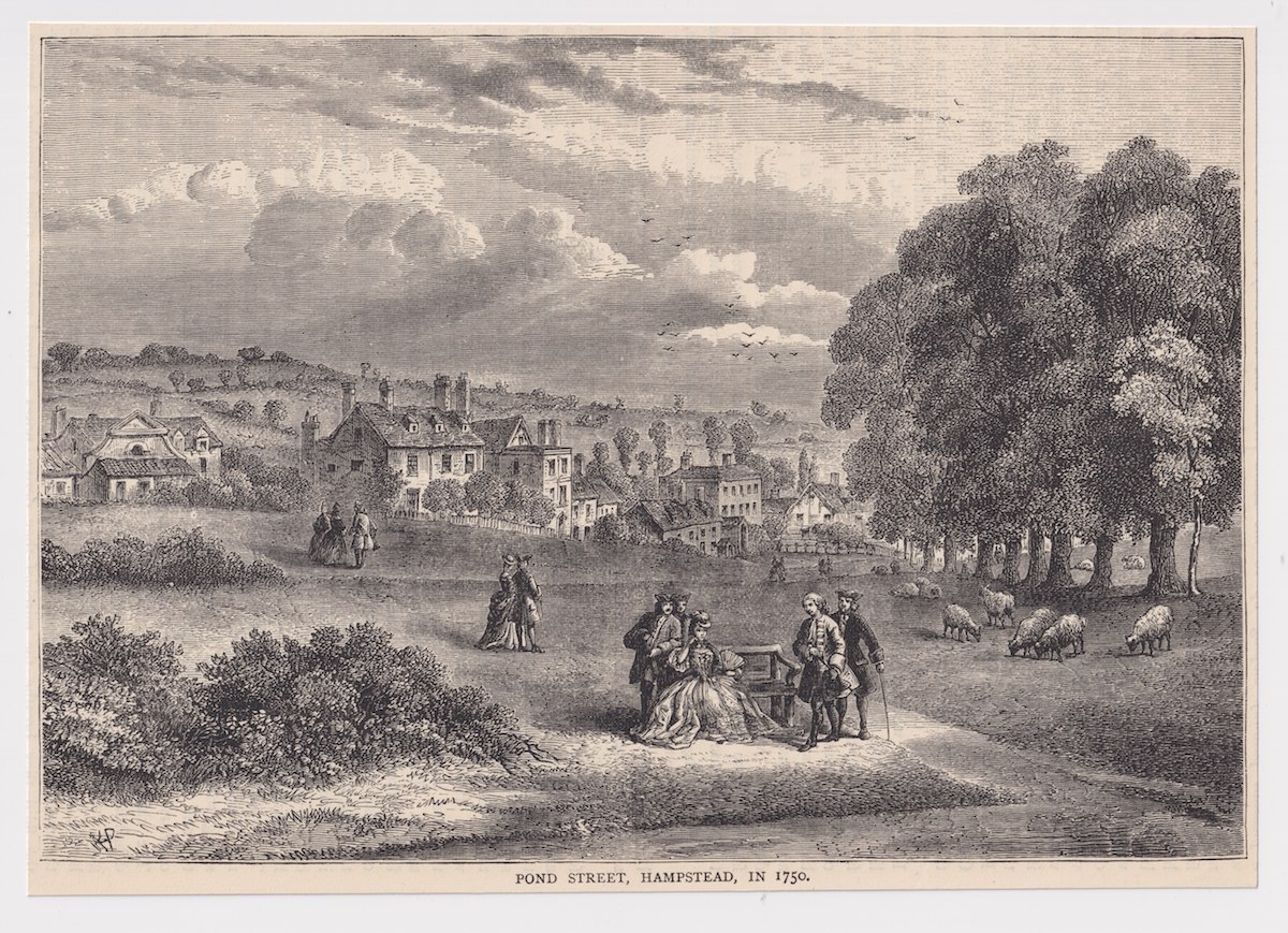 Antique Print, Pond Street, Hampstead, 1880, credit Antiche Curiosità©
