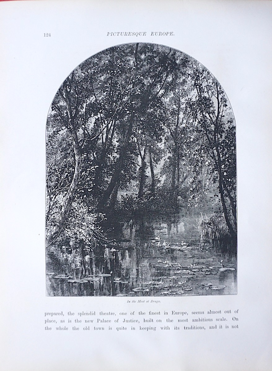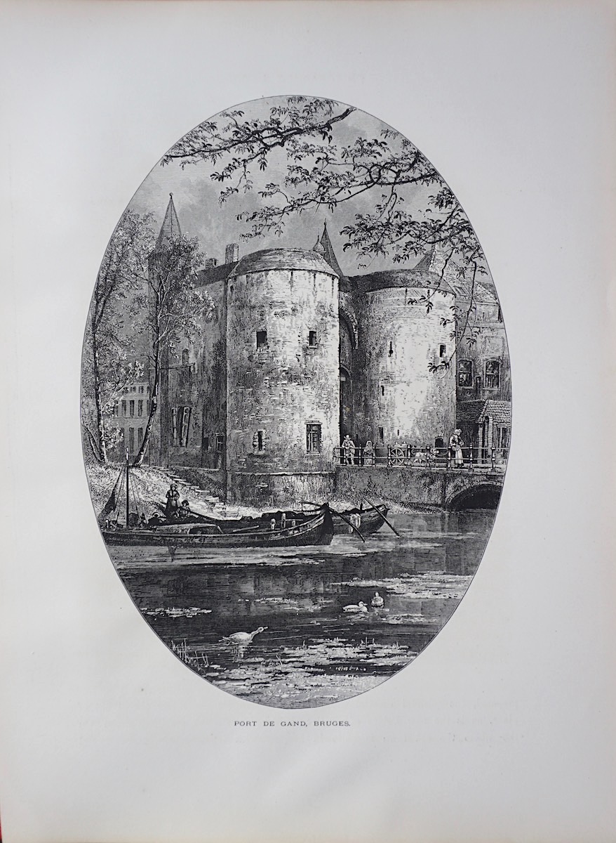 Antique Print, Port de Gand; In the Moat, Bruges, 1870, 32 x 24 cm. Printed on both sides.