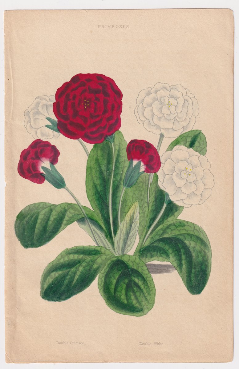 Antique Print, Primroses, 1870 ca. credit Antiche Curiosità©