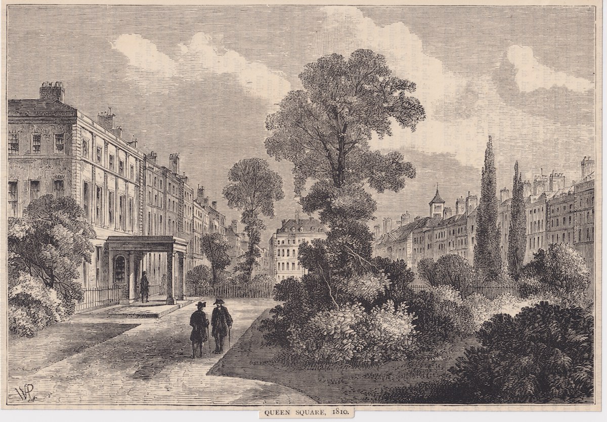 Antique Print, Queen Square, 1879, 21,5 x 15 cm.