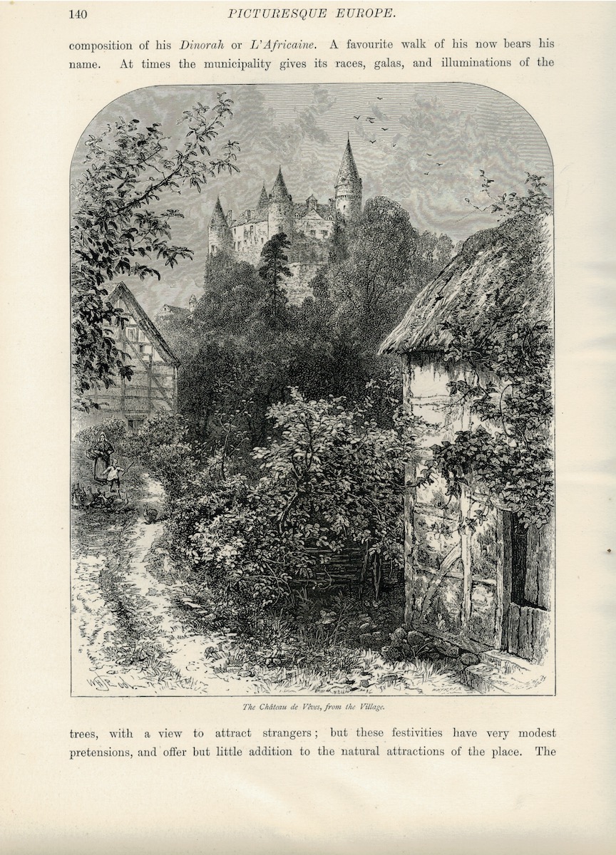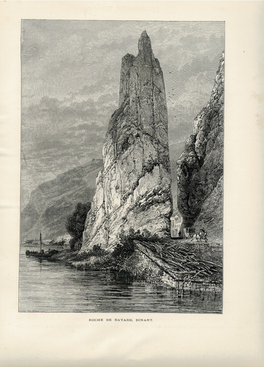 Antique Print, Roche de Bayard, Dinant; The Château de Vêves, 1871