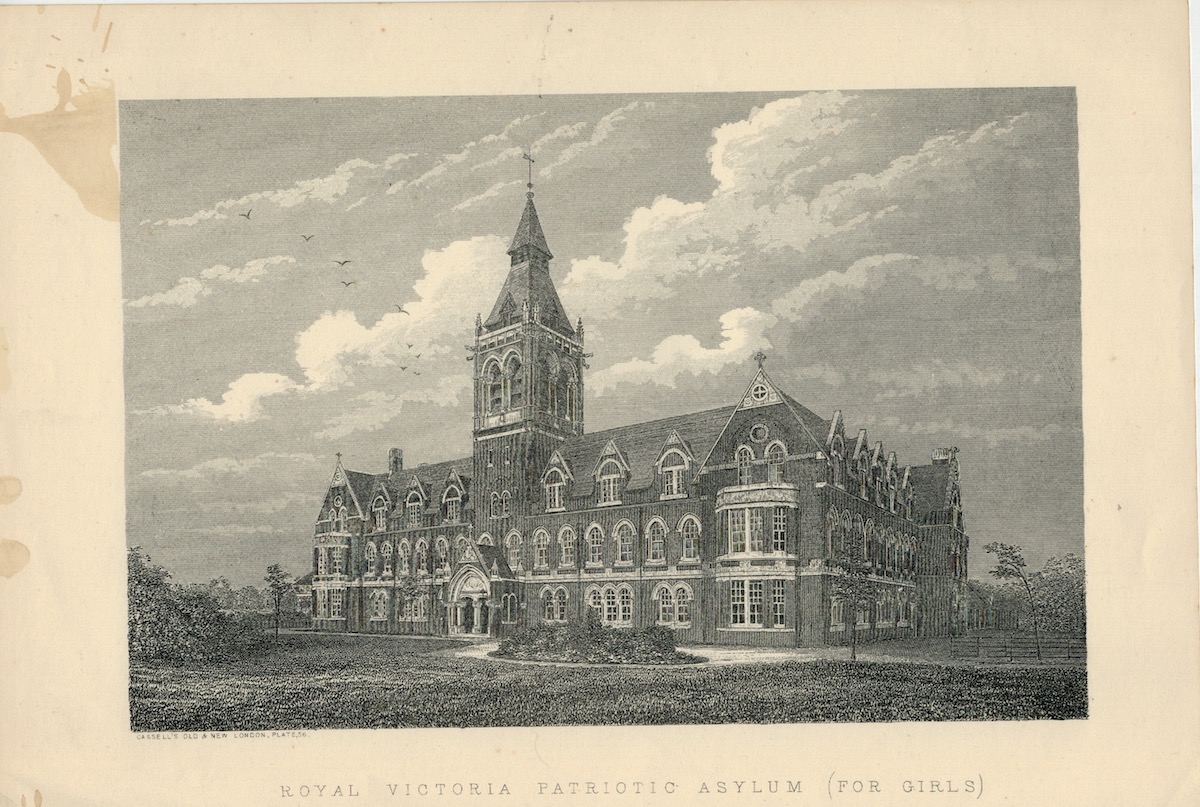Antique Print, Royal Victoria Patriotic Asylum, 1880, credit Antiche Curiosità©