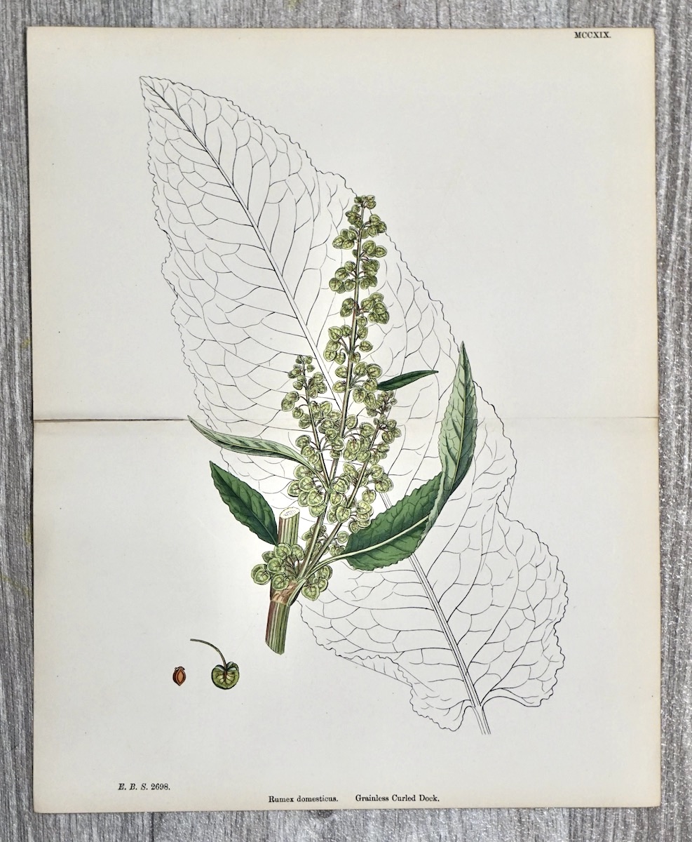 Antique Print, Rumex Domesticus, 1880 ca. credit Antiche Curiosità©