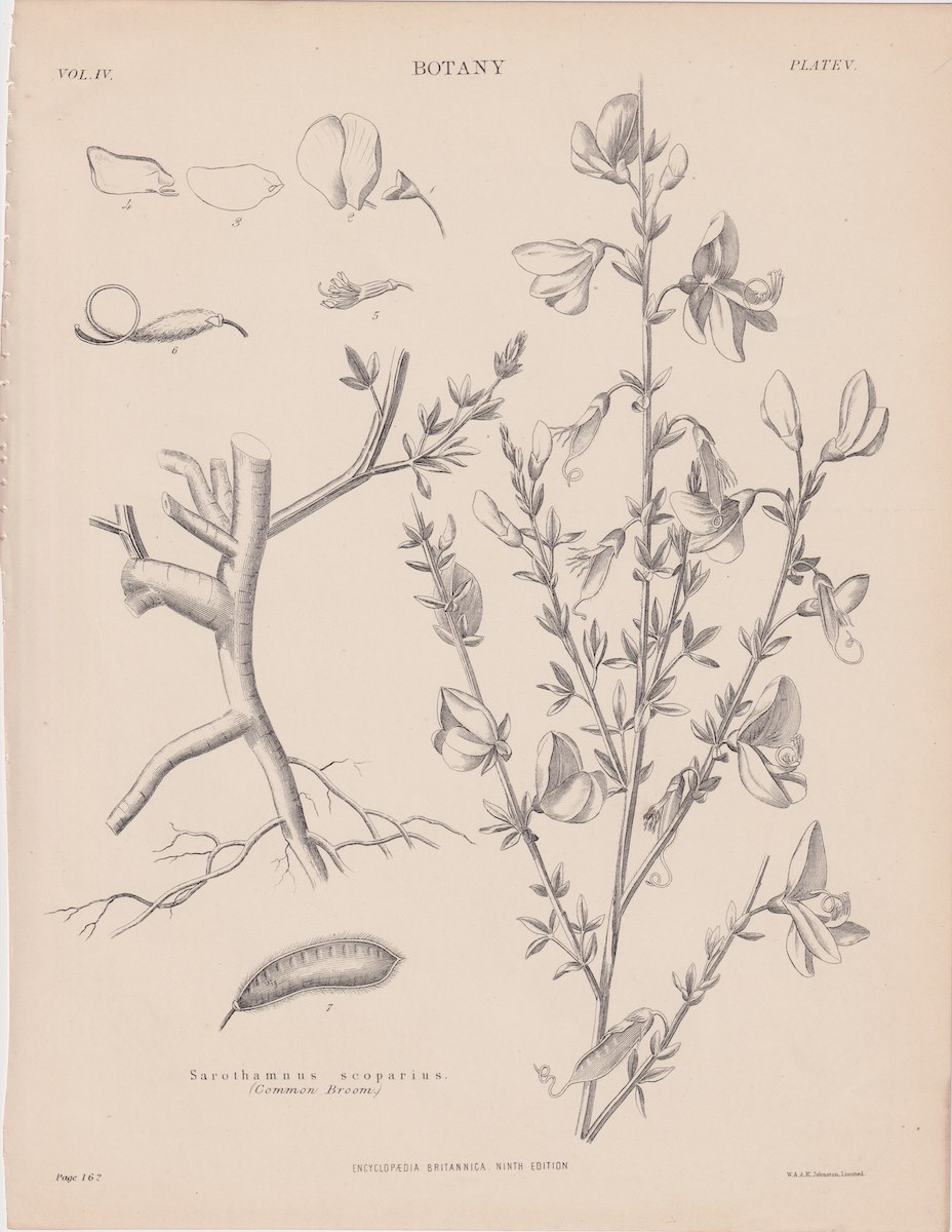 Antique Print, Sarothamnus scoparius, 1889, credit Antiche Curiosità©