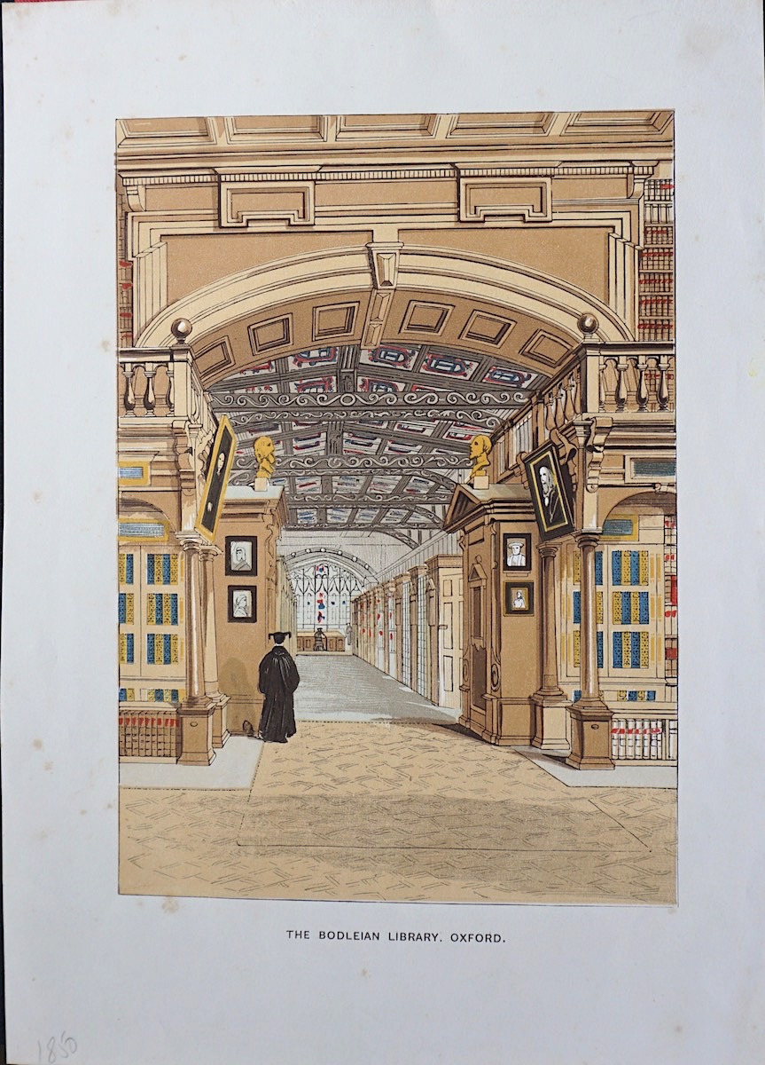 Antique Print, The Bodleian Library, Oxford, 1850, 33 x 23,7 cm.