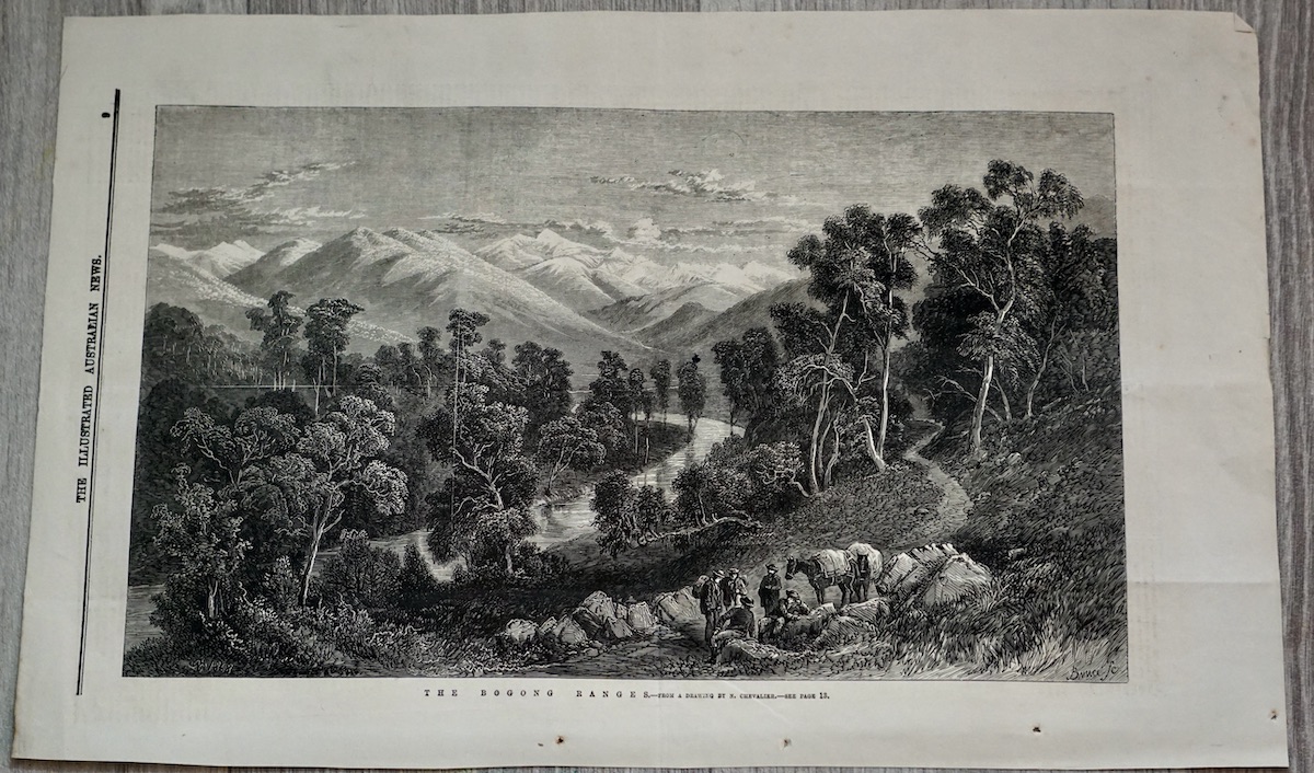 Antique Print, The Bogond Ranges, 1868, 44 x 28.5 cm.