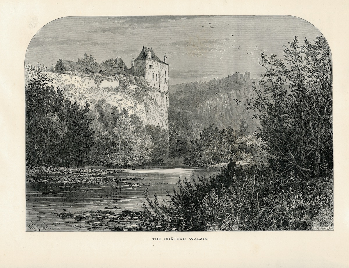 Antique Print, The Chateau Walzin; On the Meuse, 1871