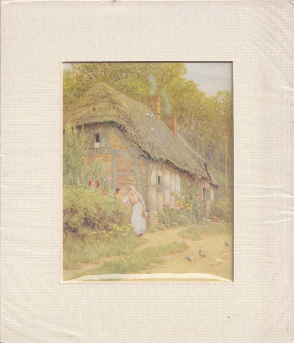 Antique Print, The cottage in the countryside, 1900, 19.1 x 22.1 cm.