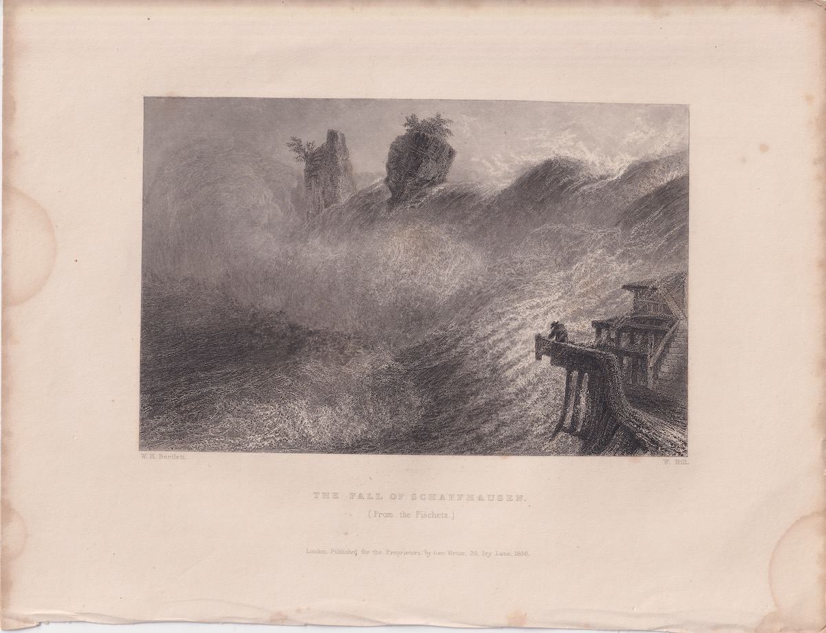 Antique Print, The Fall of Shaffhausen, 1836, credit Antiche Curiosità©