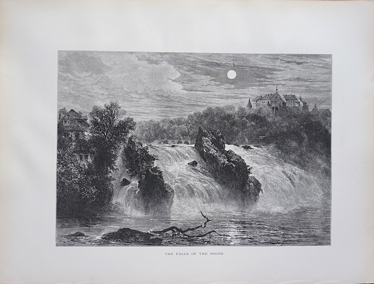 Antique Print, The Falls of the Rhine, 1870, 32 x 24,3 cm.