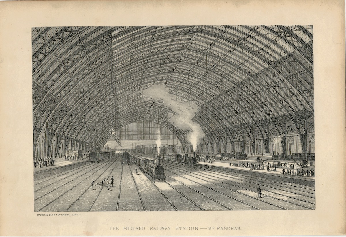 Antique Print, The Midland Railways Station, St. Pancras, 1880, credit Antiche Curiosità©