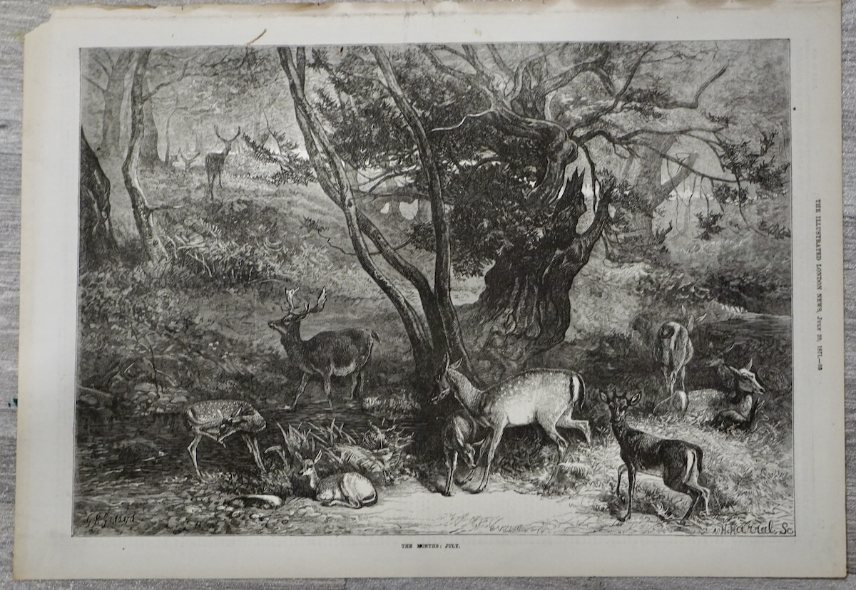 Antique Print, The Months: July, 1871, 39.5 x 28 cm.