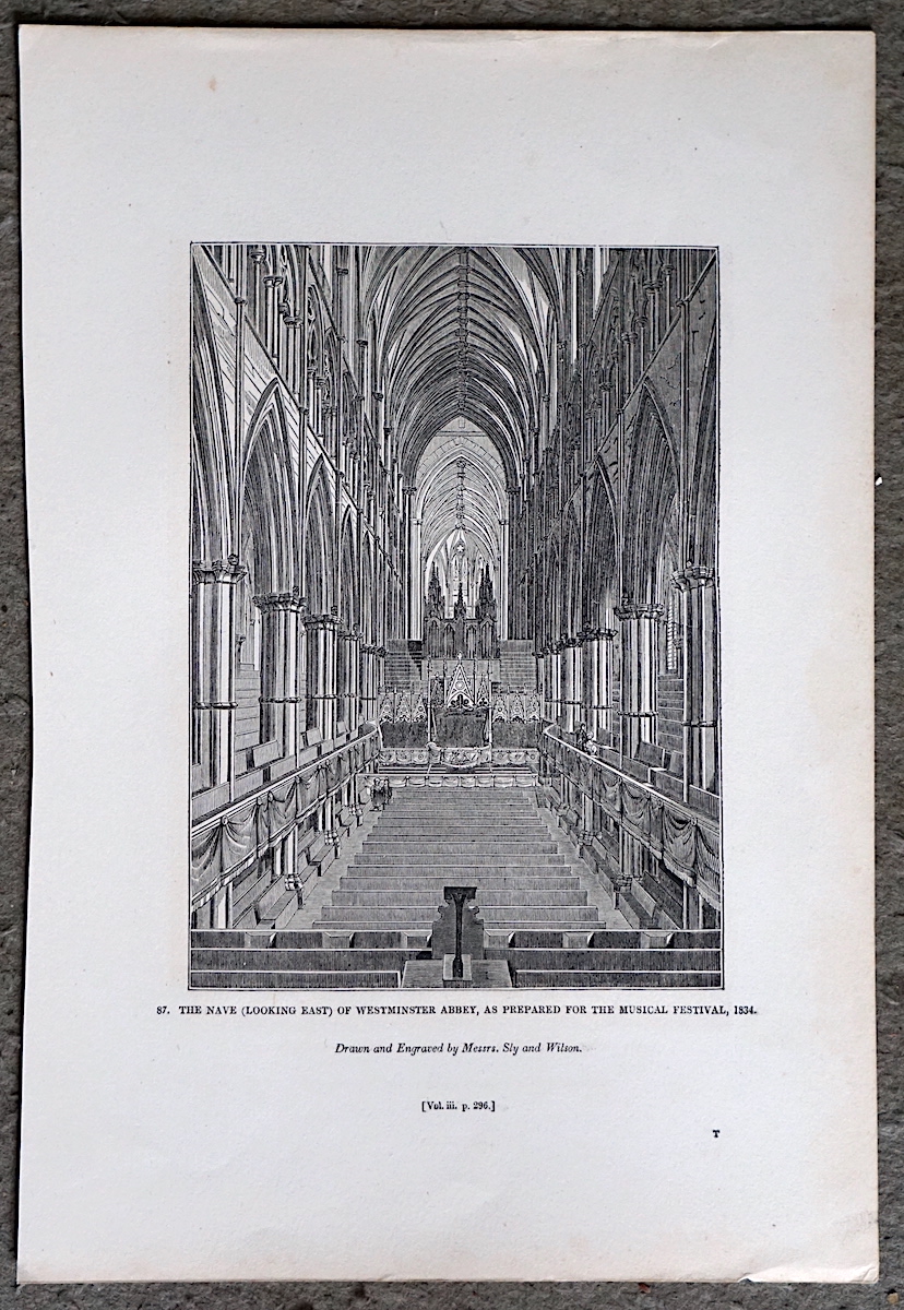 Antique Print, The Nave of Westminster Abbey, as prepared for the musical festival, 1834, 34.5 x23.4 cm.