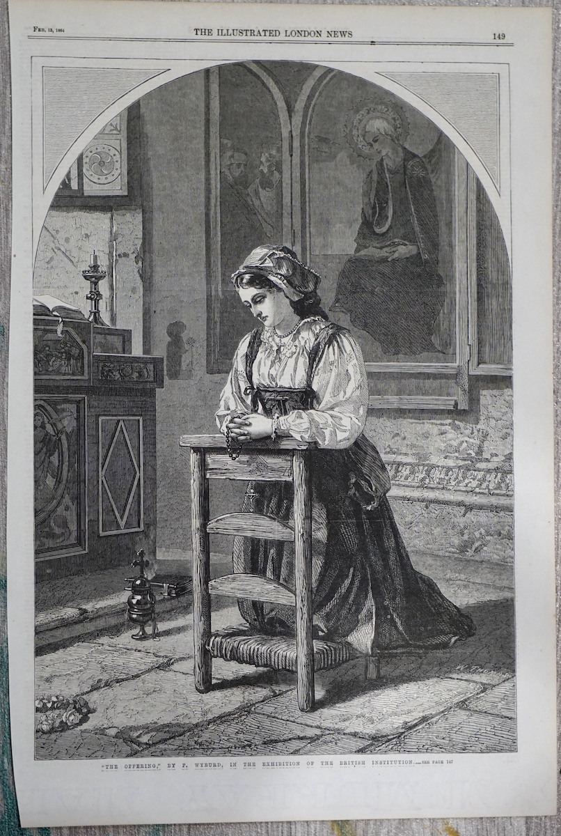 Antique Print, The offering, 1864, 27 x 40.2 cm.