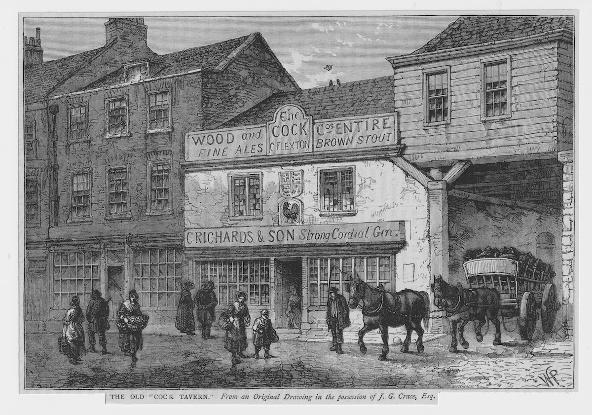 Antique Print, The Old Cock Tavern, 1890, credit Antiche Curiosità©