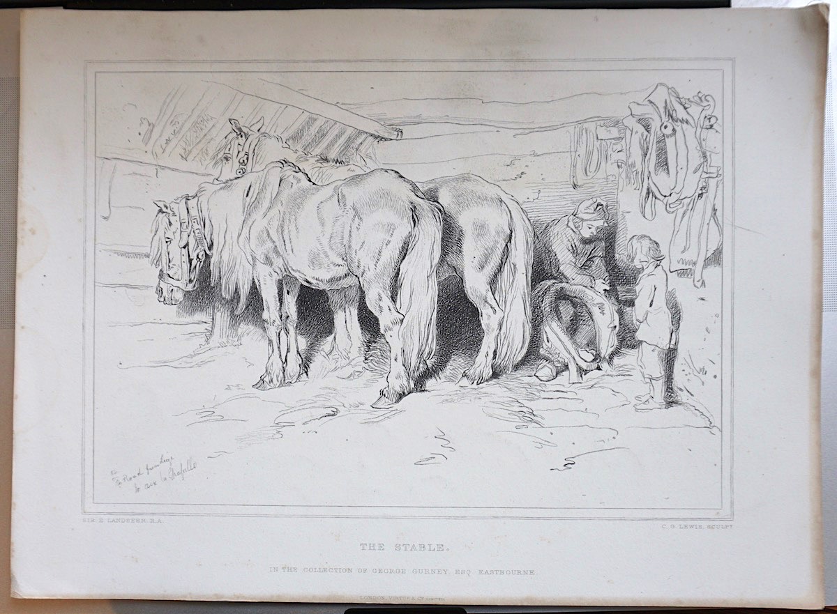 Antique Print, The Stable, 1874, 31,8 x 23,2 cm. by Sir E. Landseer.